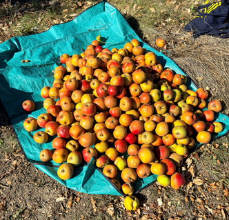 Davor mussten jedoch zunächst Äpfel gepflückt werden. Dies stellte sich jedoch als nicht schwierig heraus. Zahlreiche Apfelbäume auf der NABU-Streuobstwiese trugen dieses Jahr reichlich Früchte.