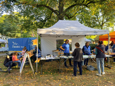 Bei herrlichem Herbstwetter fand am Sonntag, den 28. September 2025, der Inselmarkt in Stade statt. Der NABU-Stade war wieder mit einem Informationsstand vertreten. Die Aktiven des NABU Stade konnten ein reges Interesse vieler Besucher an einer naturnahen Gestaltung von Hausgärten feststellen. Im Mittelpunkt vieler Gespräche standen auch Igel- und Fledermausschutz. Sowohl große als auch kleine Besucher wurden aber auch praktisch tätig: Sie bauten Nistkästen für Gartenvögel und Fledermauskästen. Kinder bastelten Buttons mit Naturschutzmotiven. Der Inselmarkt in Stade zeigte einmal mehr, wie wichtig der direkte persönliche Austausch über Natur- und Umweltthemen ist.