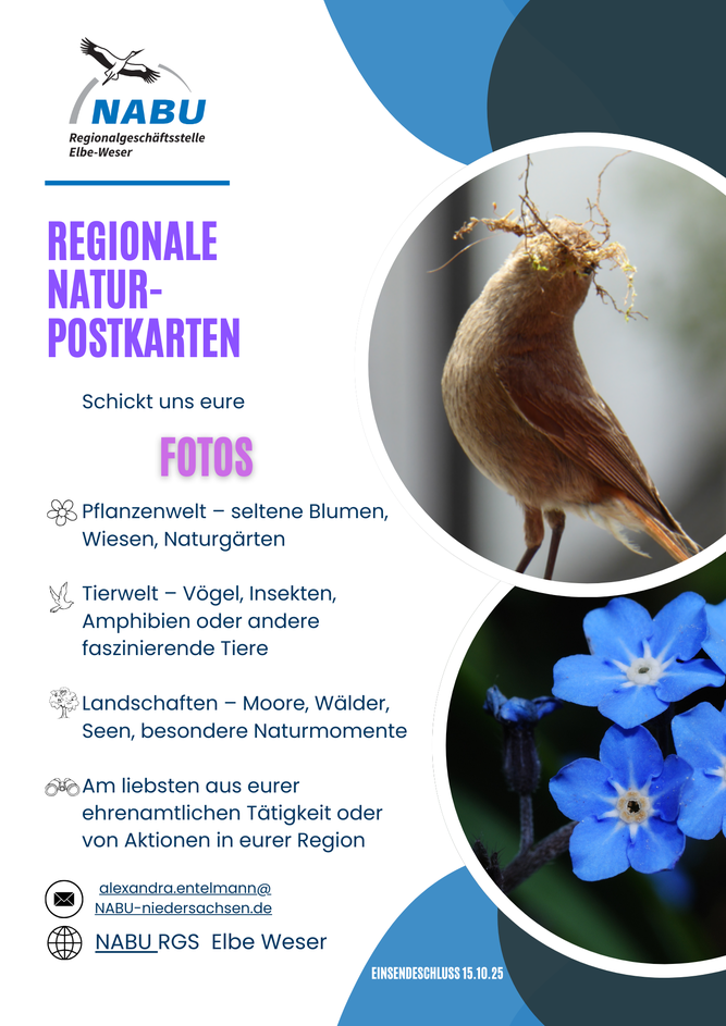 Die NABU Geschäftsstelle Elbe-Weser sucht Landschafts- und Naturfotos aus dem Landkreis Stade - Also Moore, Wälder, Seen, und schöne Naturmomente - Wer möchte kann seine Fotos an die NABU-Regionalgeschäftstelle senden. Mit etwas Glück kommt das eigene Motove auf eine NABU-Postkarte! Alles weitere sehen sie unten!